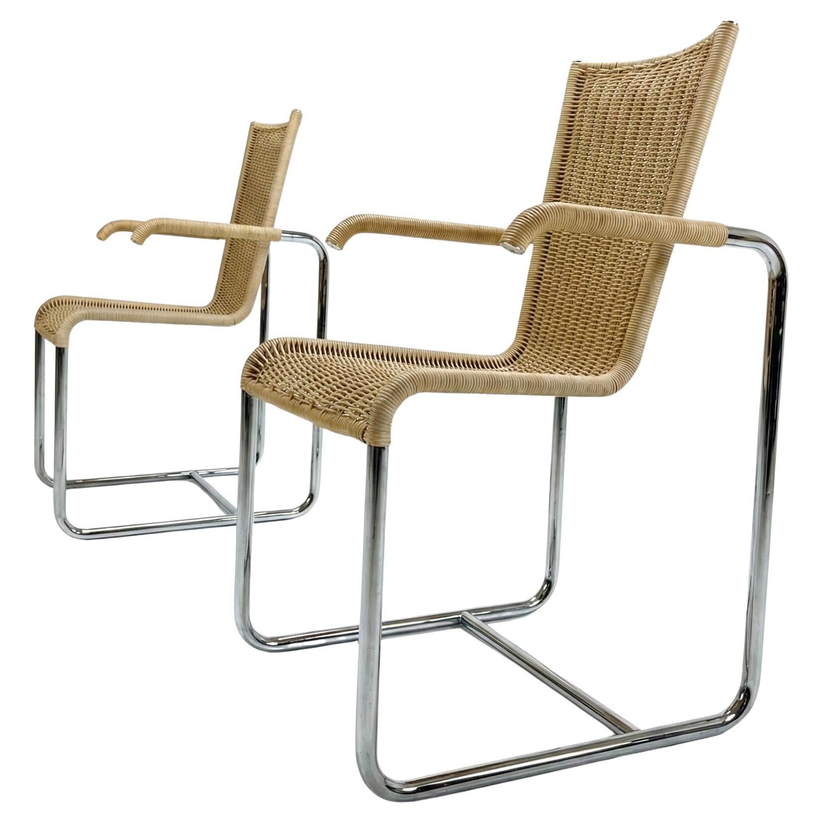 SET OF 2 TECTA D20 RATTAN TUBULAR STEEL CANTILEVER CHAIRS, GERMANY 1980s