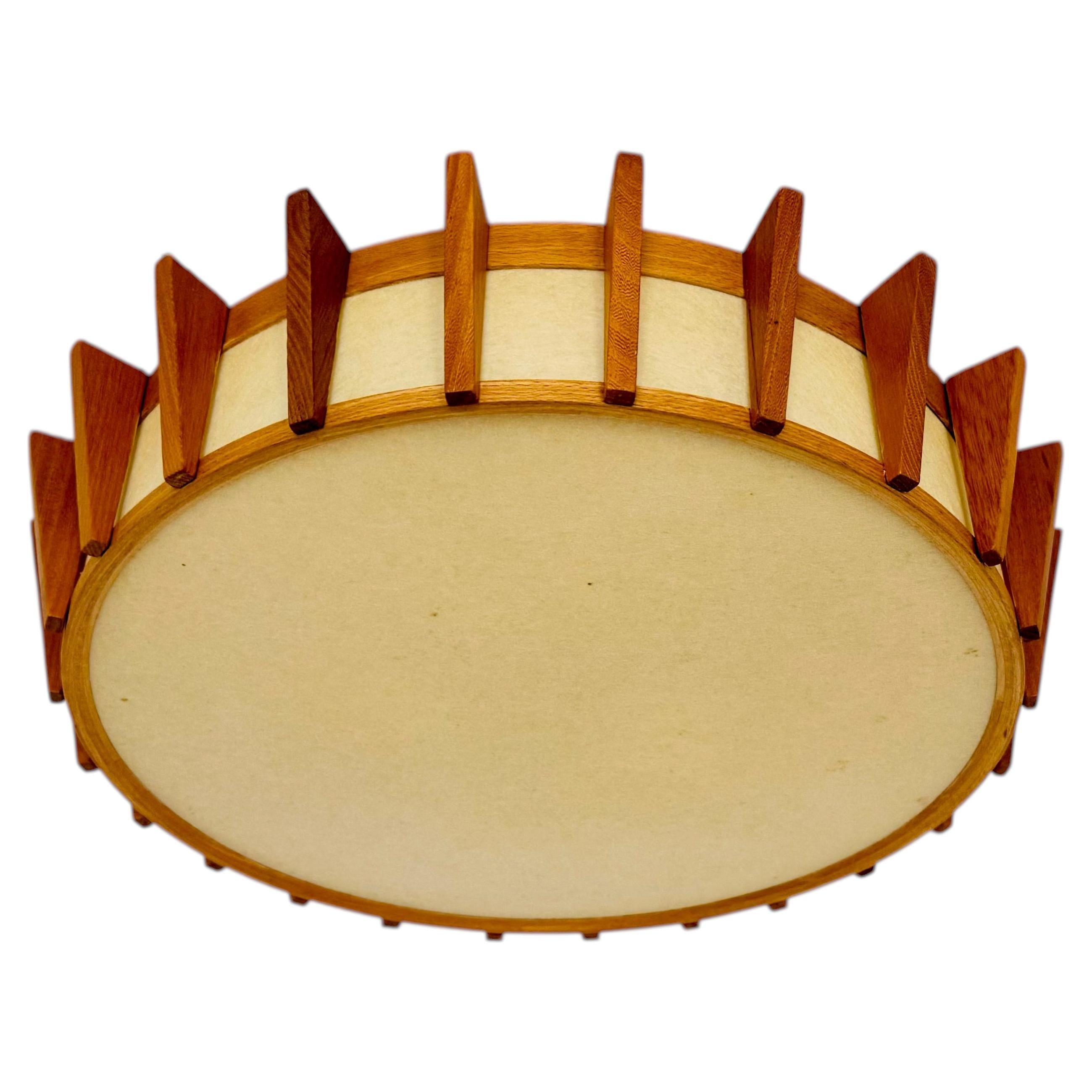 Exceptionally beautiful and large pendant lamp from the 1960s. The design is very unusual. The shape and the materials create a warm and very pleasant light. The teak details are ...