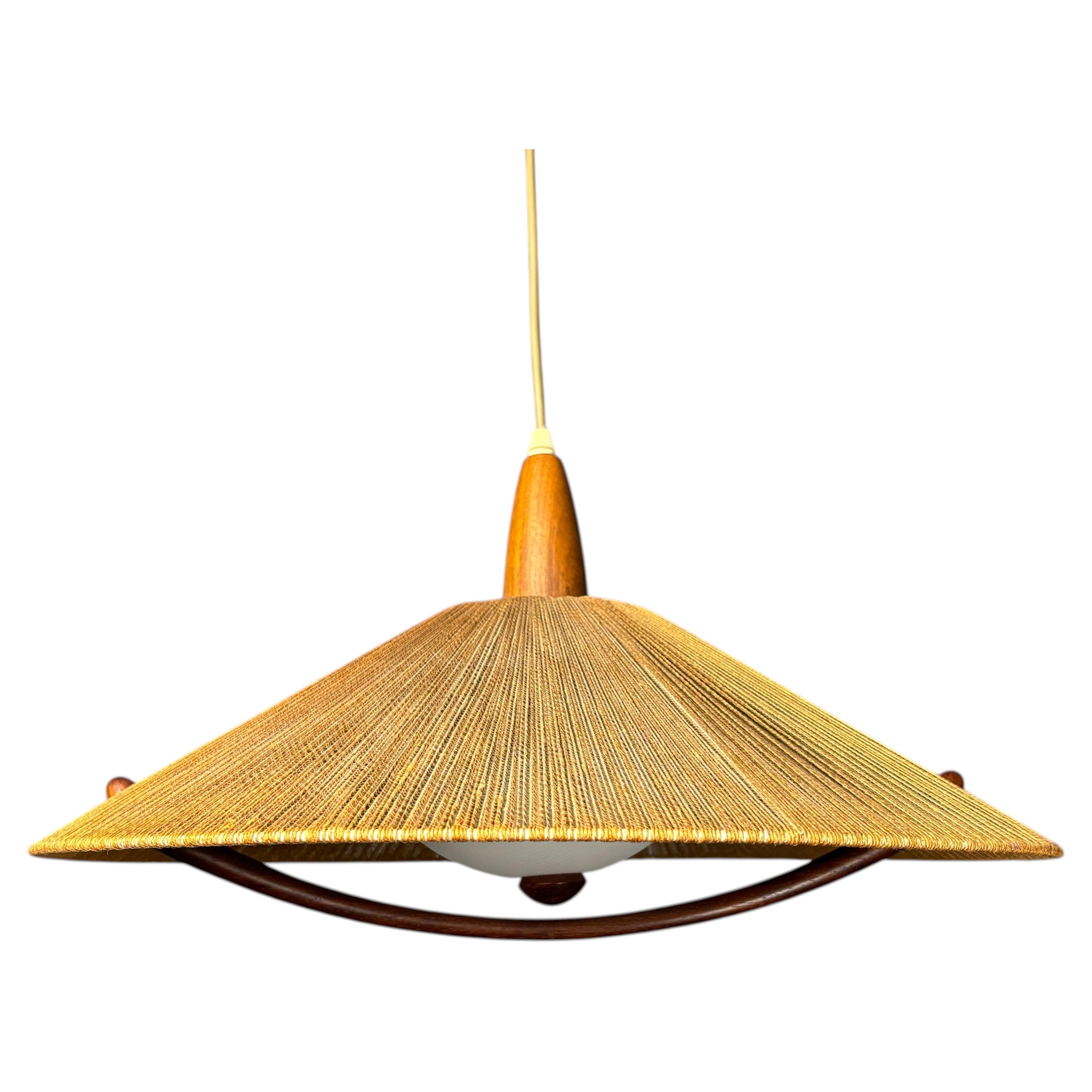 Large Raffia Bast and Teak Pendant Lamp from Temde