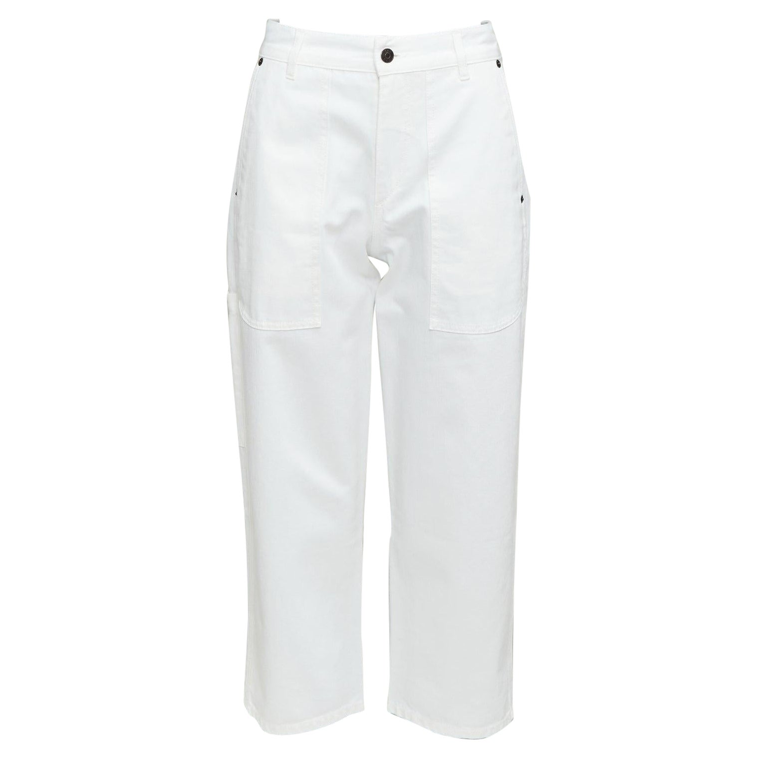 THE ROW white cotton studded patch pockets high waist crop jeans US0 XS