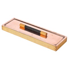 A rare functional Mid-Century modernist desk accessories set crafted in Italy in the 1960s. The set comprises three pieces: a pen holder, a box, and a ruler. The refined shape boasts...