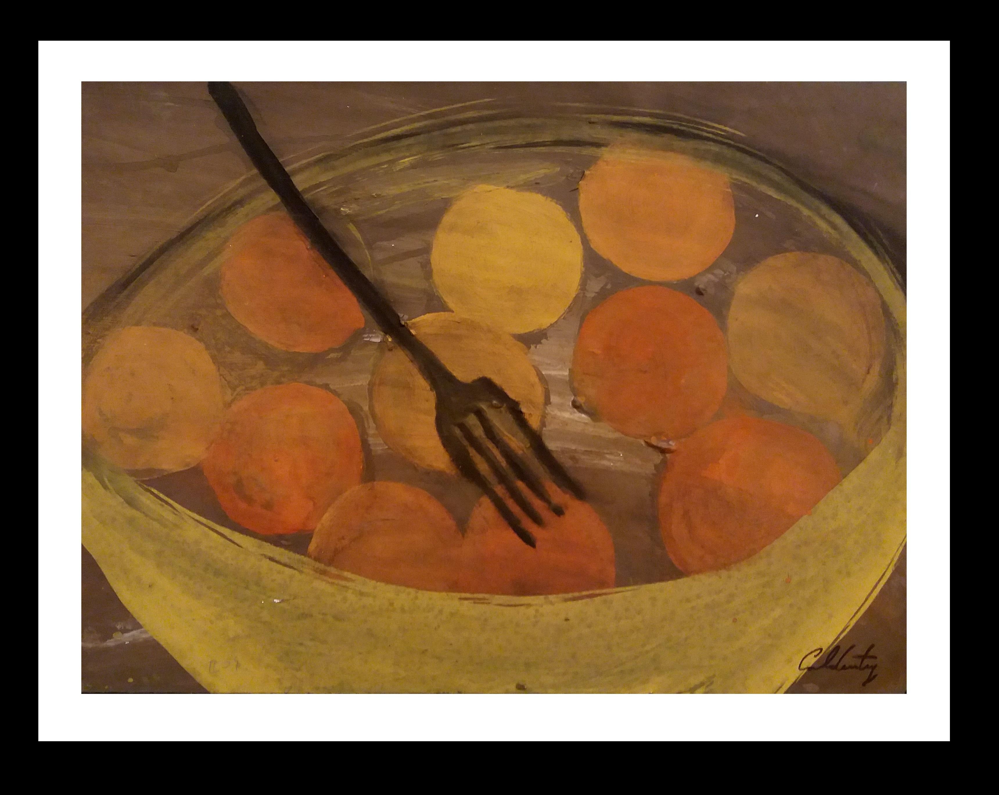 Caldentey Fruits original neo figurative acrylic paper painting