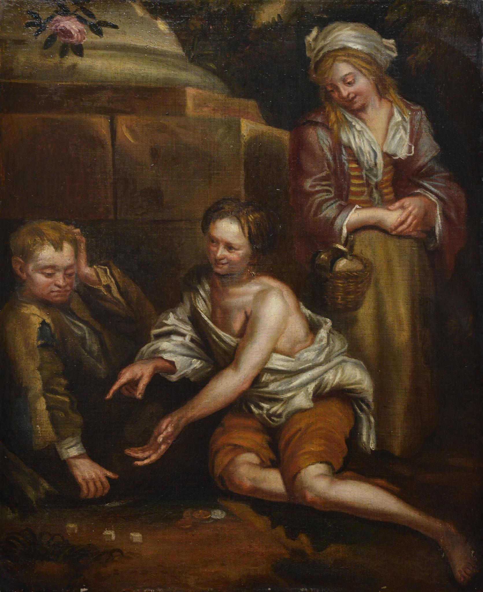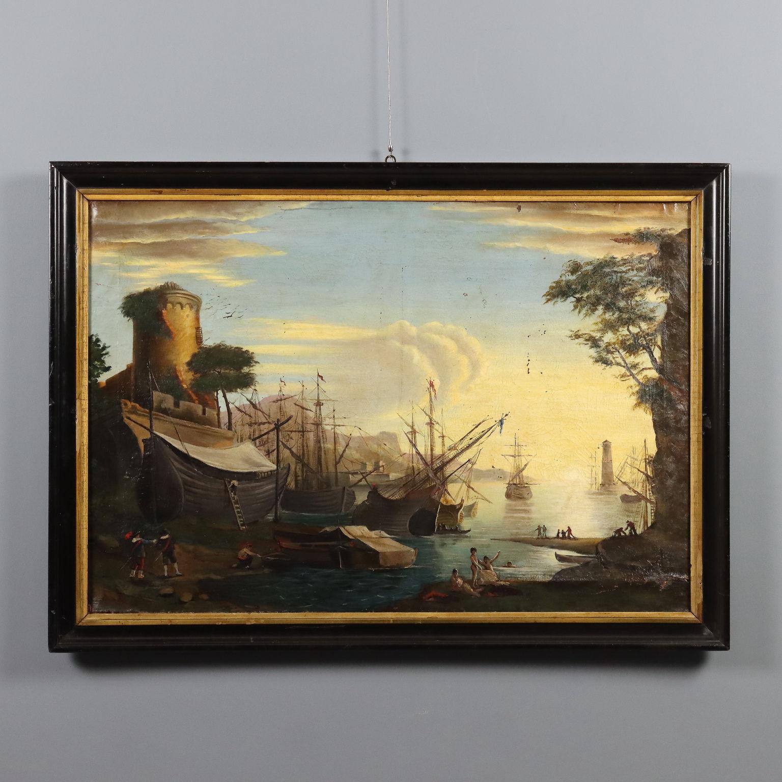 The painting combines naturalism with the wash method of watercolour painting and a reduced palette which allows for a rich harmony of shadow and light. Although appearing to simply utilize monotone colours, closer inspection reveals splashes of quite vivid colours; the yellow on the horizon, a deep crimson on the trousers of one of the figures, blue in the nets etc. The colour is subtle but adds a richness to the overall composition implying that this artist has received an academic training; knowing how to get the most from the materials.