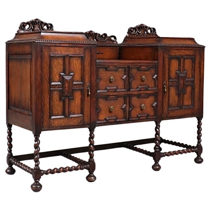 Antique English Art Deco Carved Oak Bookcase Cabinet, Circa 1920s