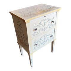 Gray - Light Green Floral Painted Cupboard - 18th Century