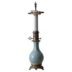 This table lamp originates from France and dates to the late 1930s. It features a geometric wooden base with a distinctly architectural character typical of the period. The oak base...