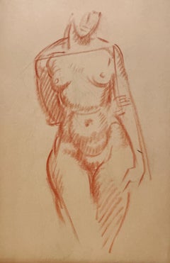 A Fine, 1930s Modern Academic Anatomical Figure Study Drawing of a Seated Male Nude Model (Torso) by Notable Chicago Artist, Harold Haydon (Am. 1909-1994). An exceptionally well exe...