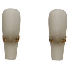 Pair of Italian Brass and Opaline Glass Wall Sconces, 1950s