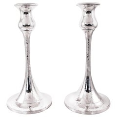 A pair of hammered sterling silver candlesticks that have a young and modern feel. They are regal and beautiful; any bride will be proud to use them.