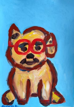 Beam Me Doggie - Originelle, skurrile, figurative Pop-Art auf Zeitungspapier von Gary John