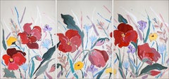"Many For The Empath" (abstrakt, Flora, Fauna, Rosen, Ölgemälde, grün, rosa)