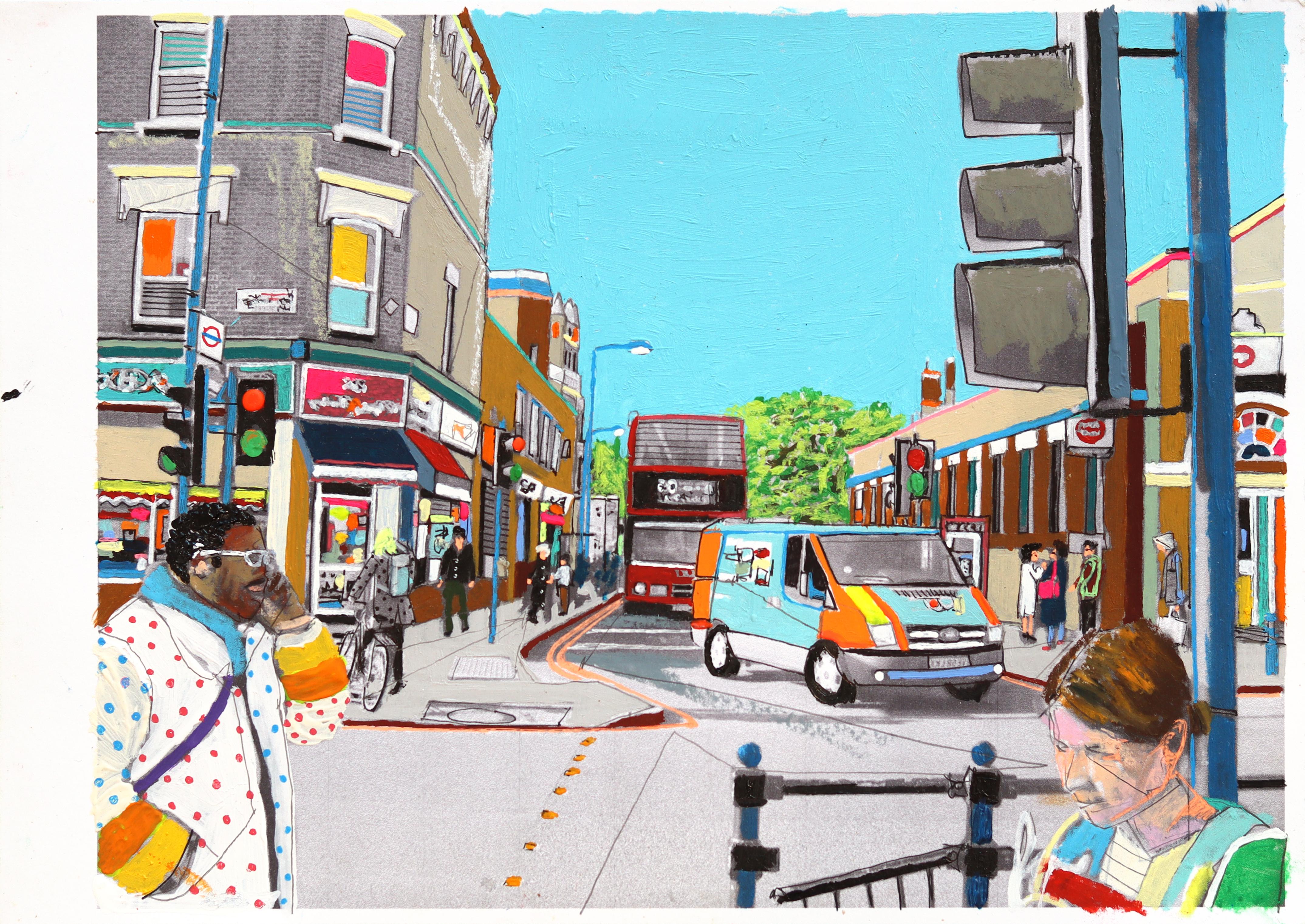 Gelateria - Original abstrakte figurative Farbe getränkt Mixed Media Kunstwerk