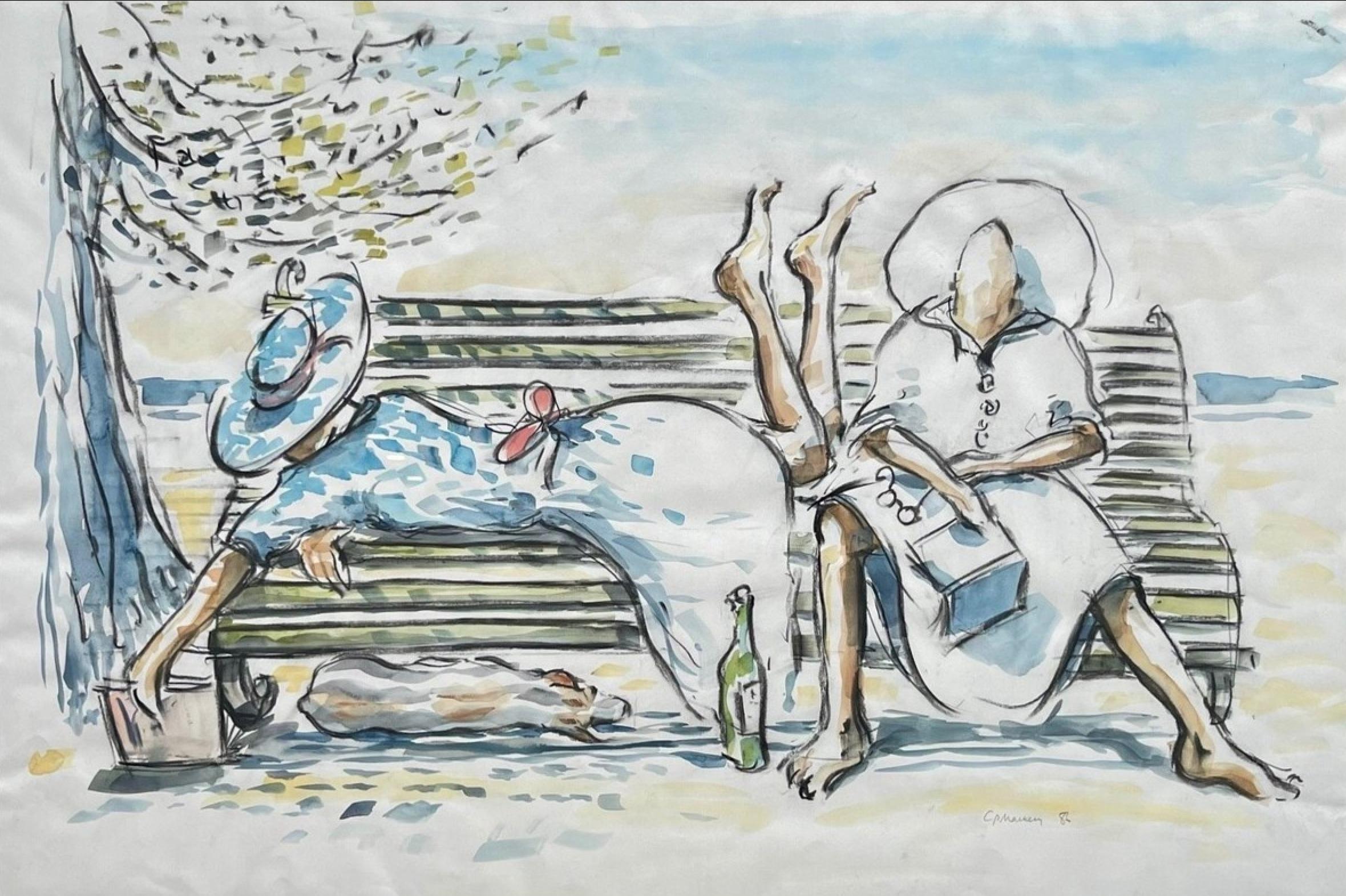1910er, Art déco, Figurative Zeichnungen und Aquarelle
