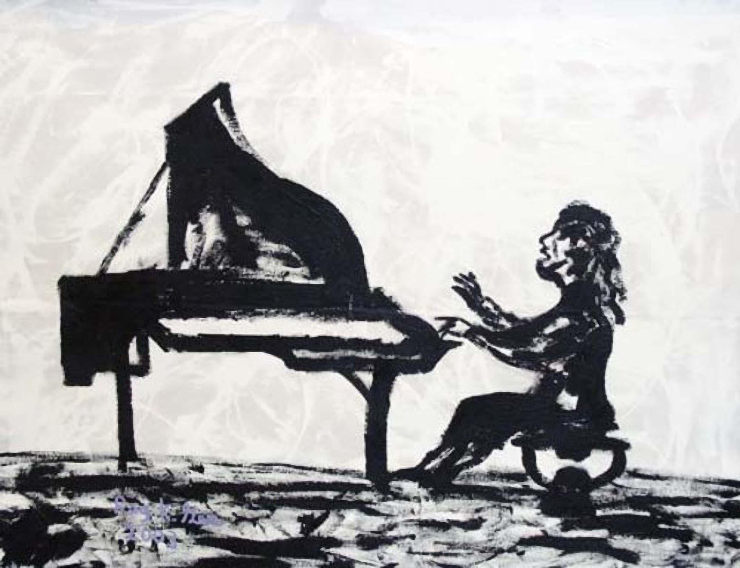 Das Orchester unterzeichnet von Guy Nicod (Französisch 1923 - 2021) Öl auf Leinwand, ungerahmt Gemälde : 32 x 40 Zoll Herkunft: Künstlernachlass, Frankreich Zustand: sehr guter und g...