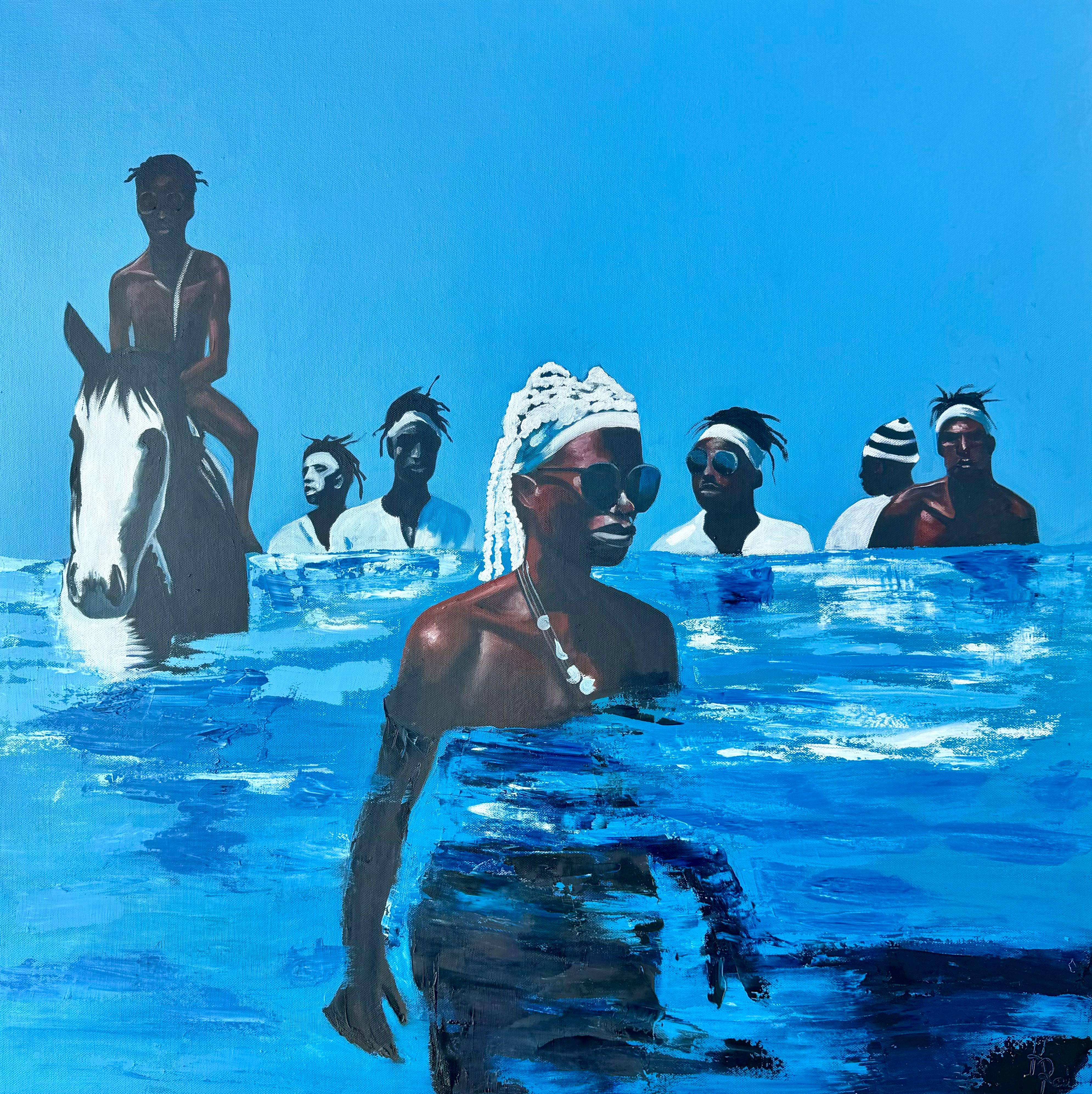 "Eternal Pulse" - Meereswellen Ölgemälde in raffinierter Vert Bosphore Palette