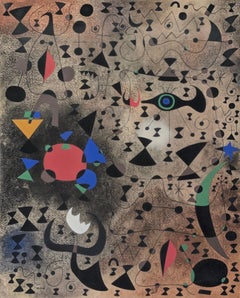 Medium: Pochoir (nach der Mischtechnik-Collage). Gedruckt in Paris im Atelier Daniel Jacomet und 1960 im Verlag Berggruen erschienen. Das Bild misst 5 x 3 7/8 Zoll (130 x 98 mm). Auf...