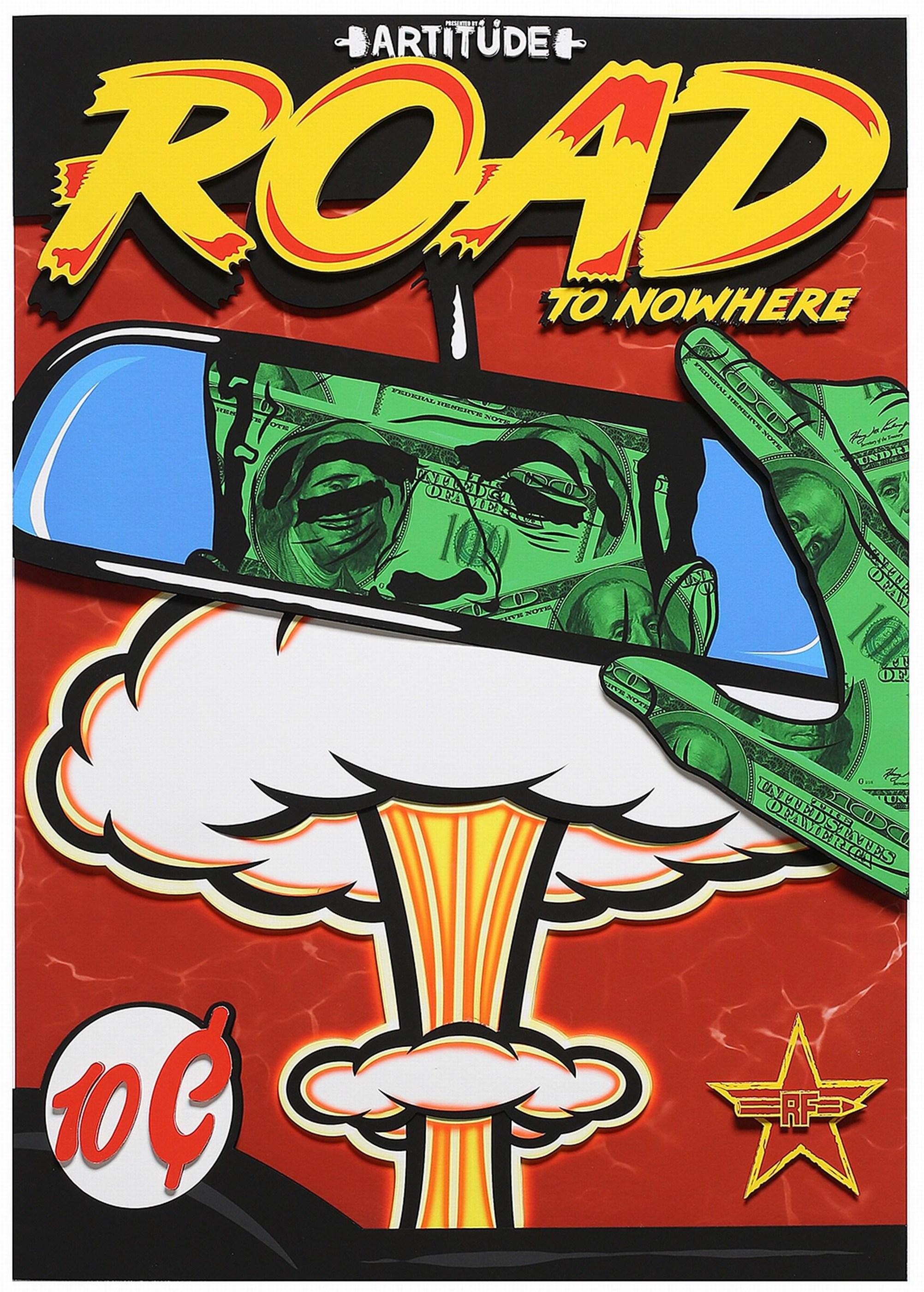 Ein handgemalter, dreidimensionaler Druck in umgekehrter Perspektive, inspiriert von seinen eigenen Poparts und Büchern, die er im Studio auslegt. Produziert im Jahr 2023. Dieser Dru...