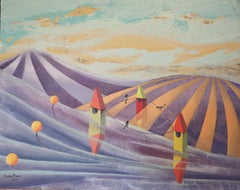 Symbolic figurative of woman having visions with religious themes and icons (cross, bride, salamander, crown, meeting Christ) while reading by Marguerite Louis Blasingame (American; 1906-1947), circa 1940-45. Marguerite and her husband Frank Blasingame were two of five artists in Hawaii during the early thirties that delved into the Polynesian history and traditions and their island symbolism. Condition: Good; professionally conserved with new stretcher bars and cleaned; inpainting on minor paint loses in upper right corner. Signed "Blasingame" lower left corner; from a collection of her work. Ungerahmt. Image, 40"H x 30"W.