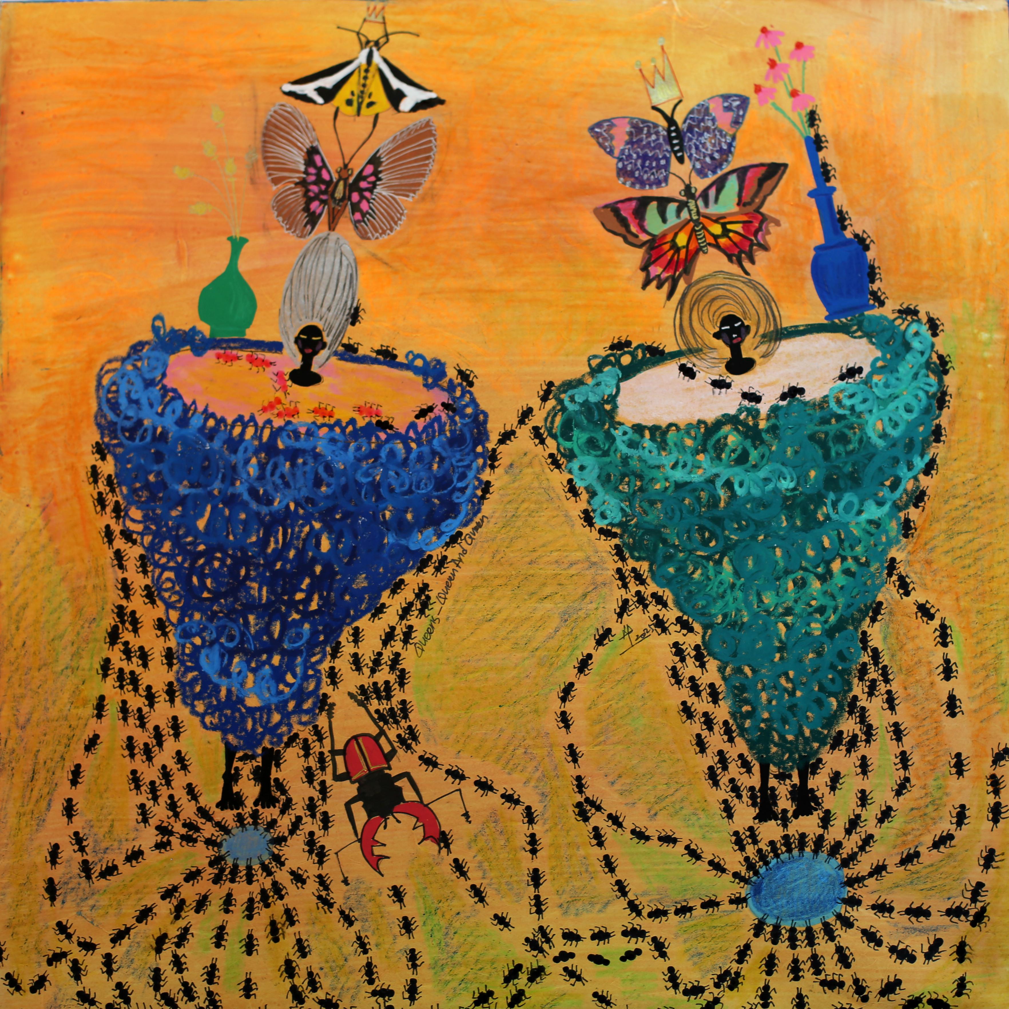 Illustrationsstil Diptychon eines Granatapfelbaums in Traubenform, Acrylgemälde auf Papier