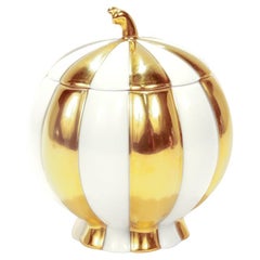 Augarten Porzellan Josef Hoffmann Weiß & Gold Melone Deckel Box / Zuckerschale aus Porzellan