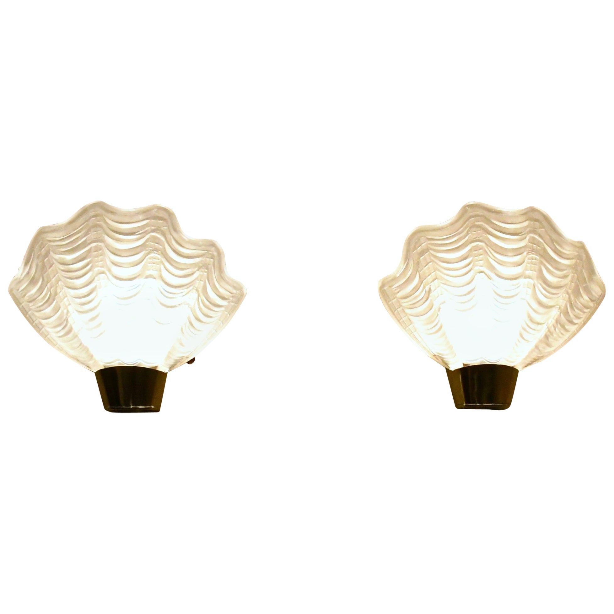 Schwedische Coquille-Muschel-Wandleuchter von ASEA, Ende der 1930er Jahre, 2er-Set