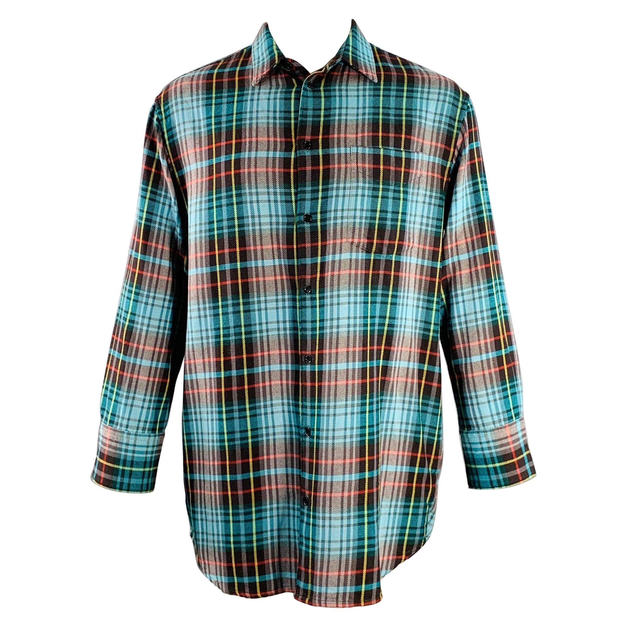 aus aquafarbenem und mehrfarbigem Baumwolltwill mit Karomuster, übergroßer Passform, einer aufgesetzten Tasche und Knopfverschluss.New with Tags.