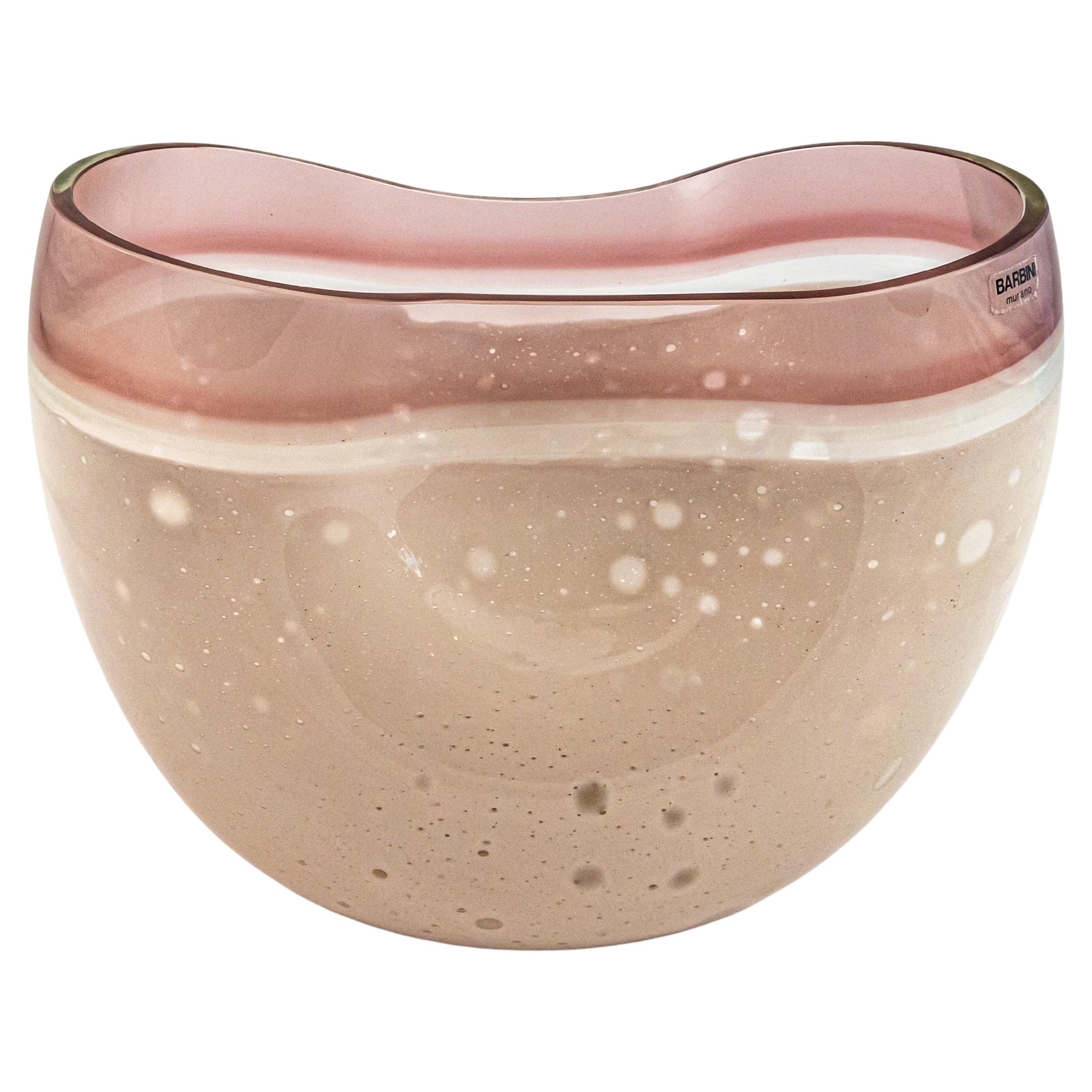 Große Schale aus mundgeblasenem Murano Barbini-Glas, die für Aufsehen sorgt. Rosa/lila/klares geblasenes Glas. Keine Herstellermarke oder Signatur.