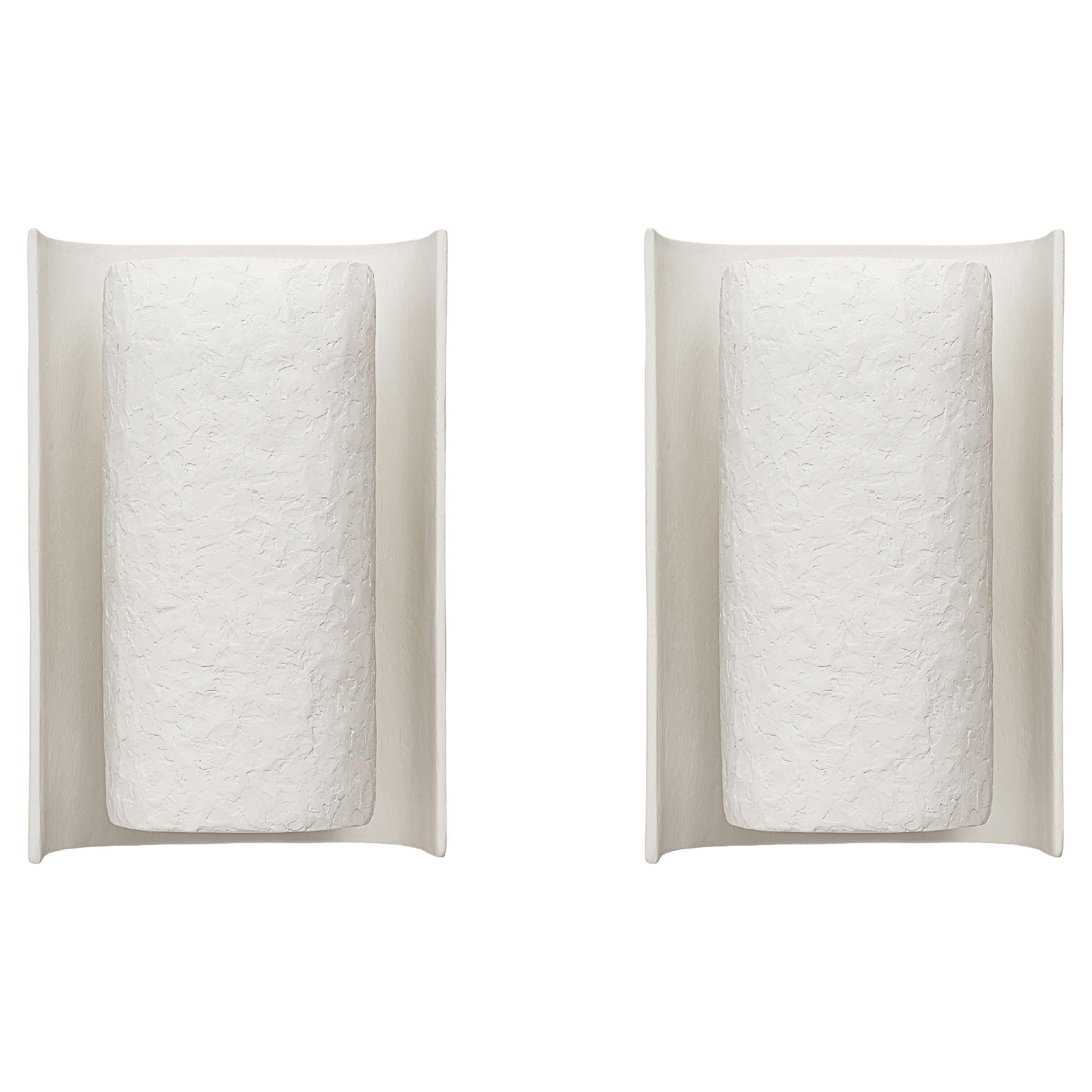 Paar skulpturale Wandleuchter 'Galba III', Wandleuchten aus weißem Gips-