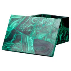 Eine stilvolle rechteckige italienische Dose mit Deckel aus natürlichem Malachit mit schönen Mustern in leuchtendem Smaragdgrün. Feine Edelsteinqualität und Handwerkskunst. Perfekt a...