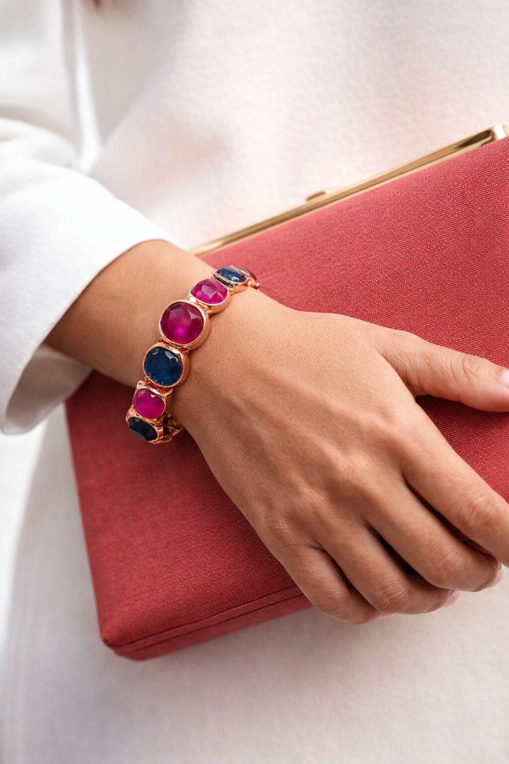 Bochic 'Capri' Vintage natürlichen Rubin & weißen Topas Armreif in 18K Gold & Silber