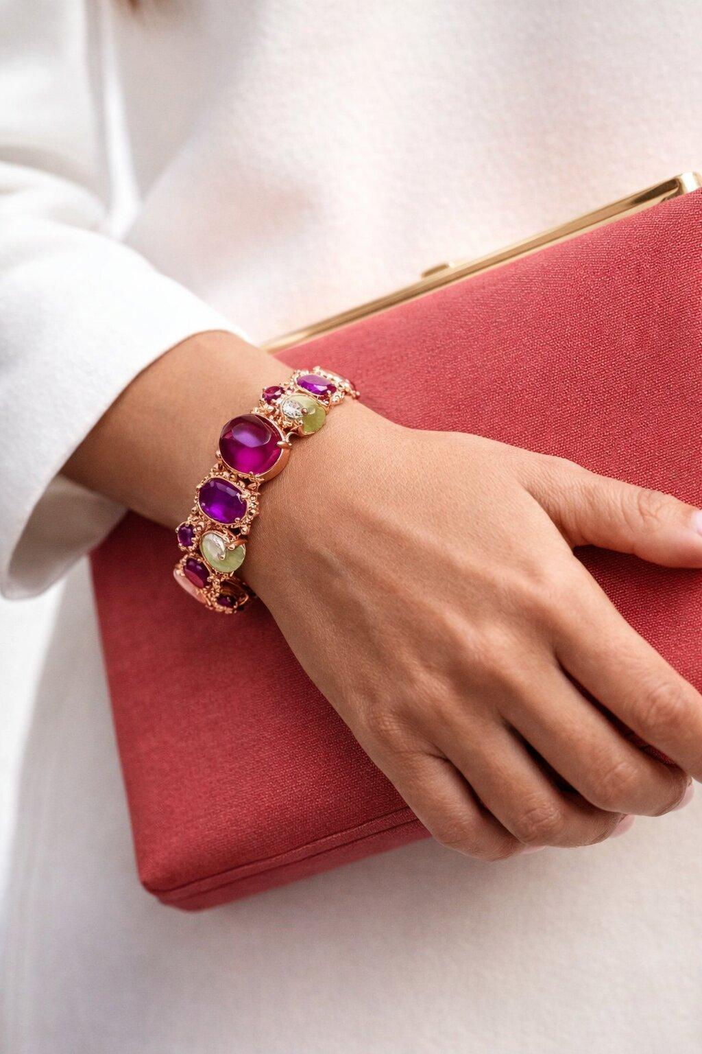 Bochic 'Capri' Vintage natürlichen Rubin & weißen Topas Armreif in 18K Gold & Silber 18K Gold & Silber - • Natürliche Edelsteine - • 49,63 Karat Rubin & 4,89 Karat Weißtopas Der B...