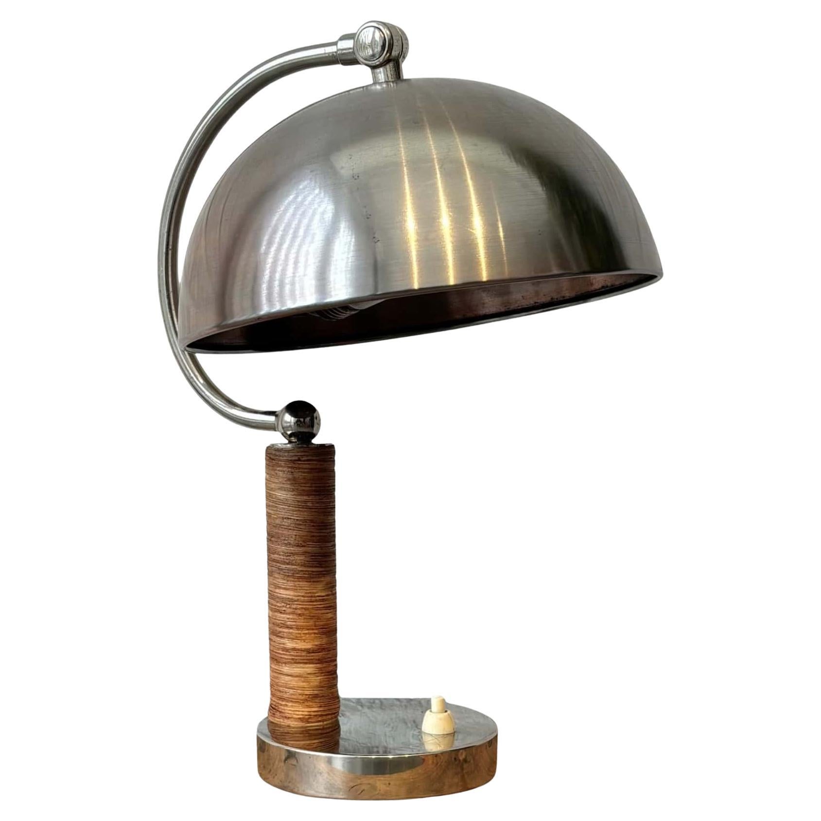Boréns, skandinavische modernistische Tischlampe, Stahl und Rattan, Schweden, 1930er Jahre