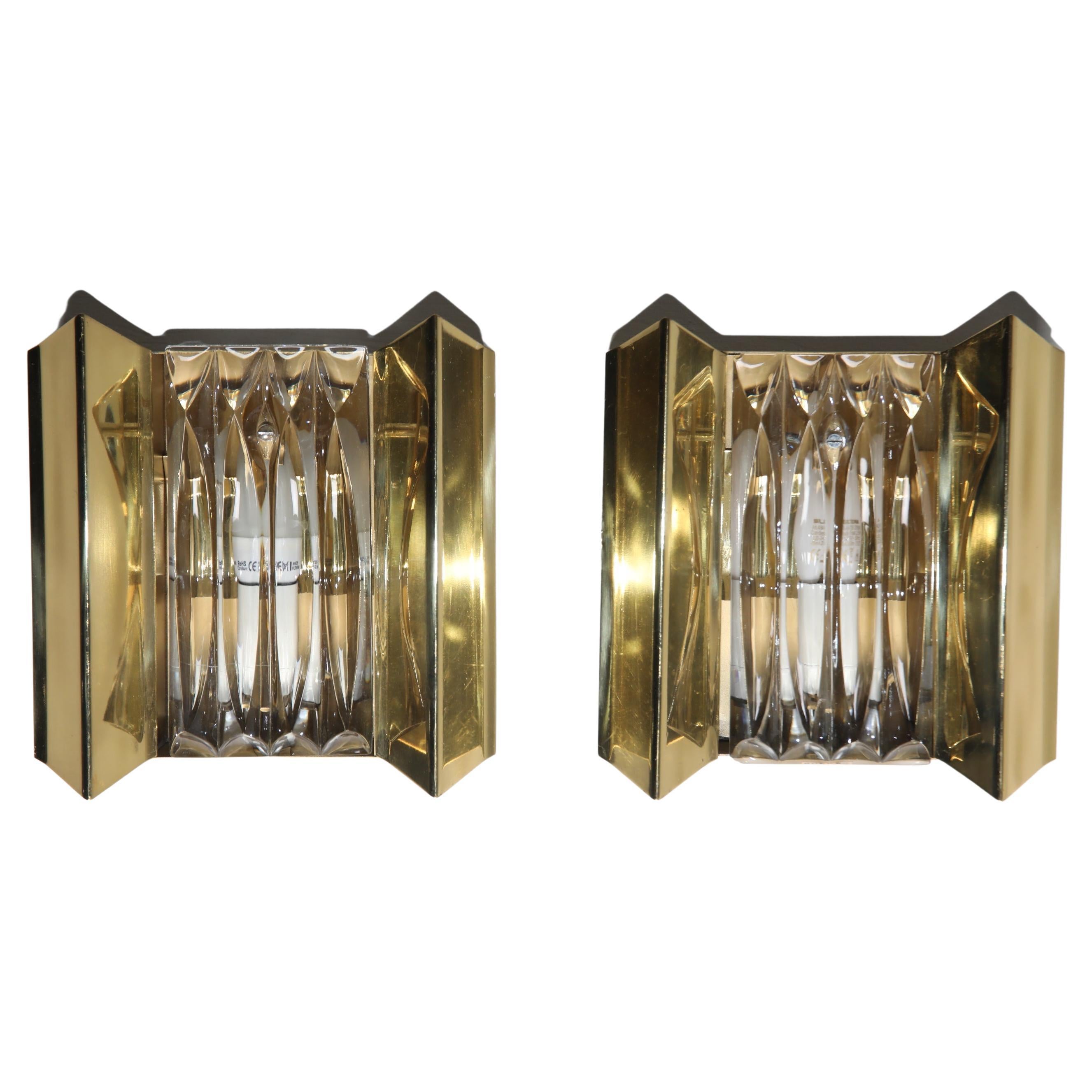 Ein Paar Wandlampen aus Messing und Pressglas von Boréns, Schweden, 1960er Jahre