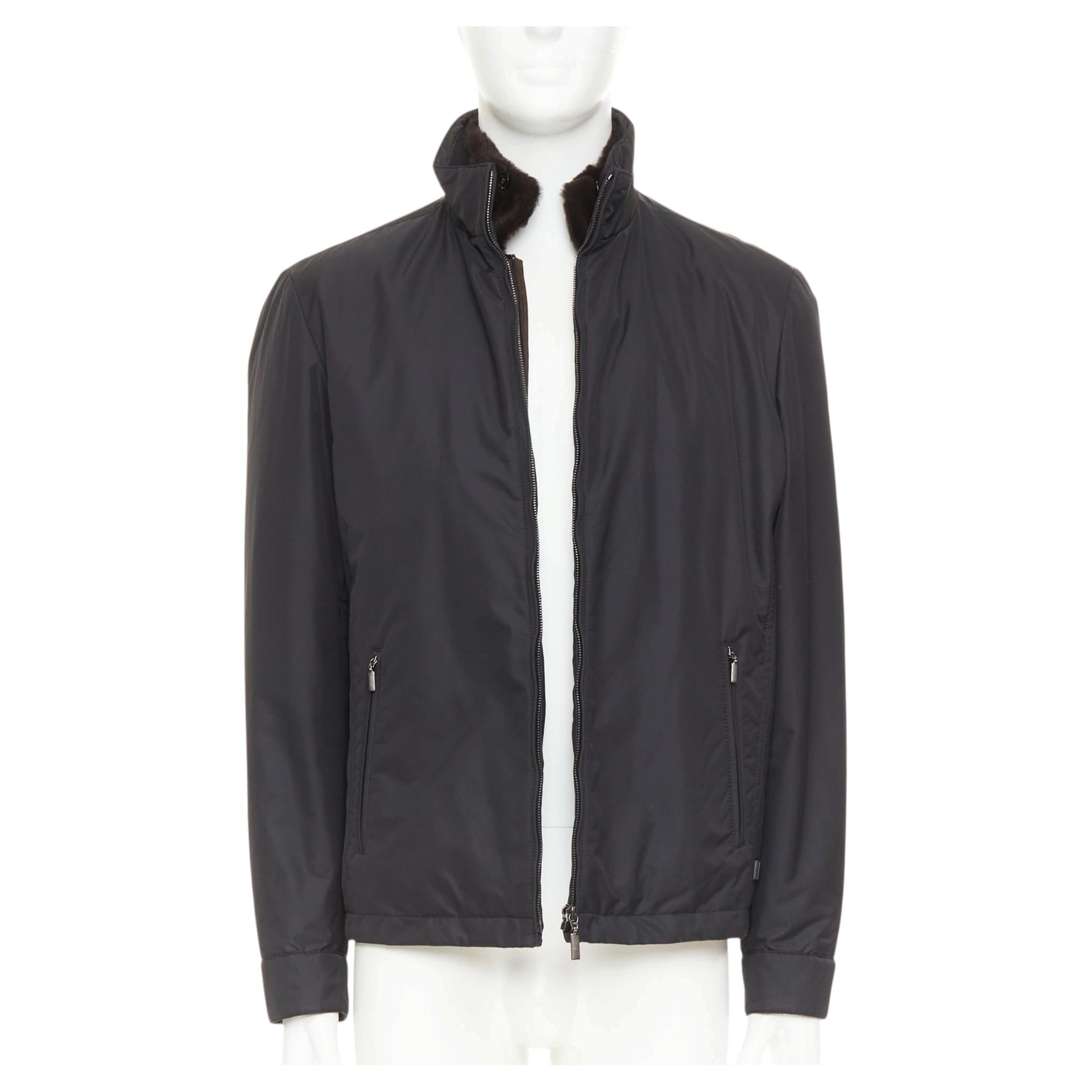 BRIONI schwarzes wasserabweisendes Nylon plüschgefütterte Sturmjacke M Referenz: WMTO/A00002 Marke: Brioni MATERIAL: Polyester, Polyester Farbe: Schwarz, Braun Muster: Solide Versch...