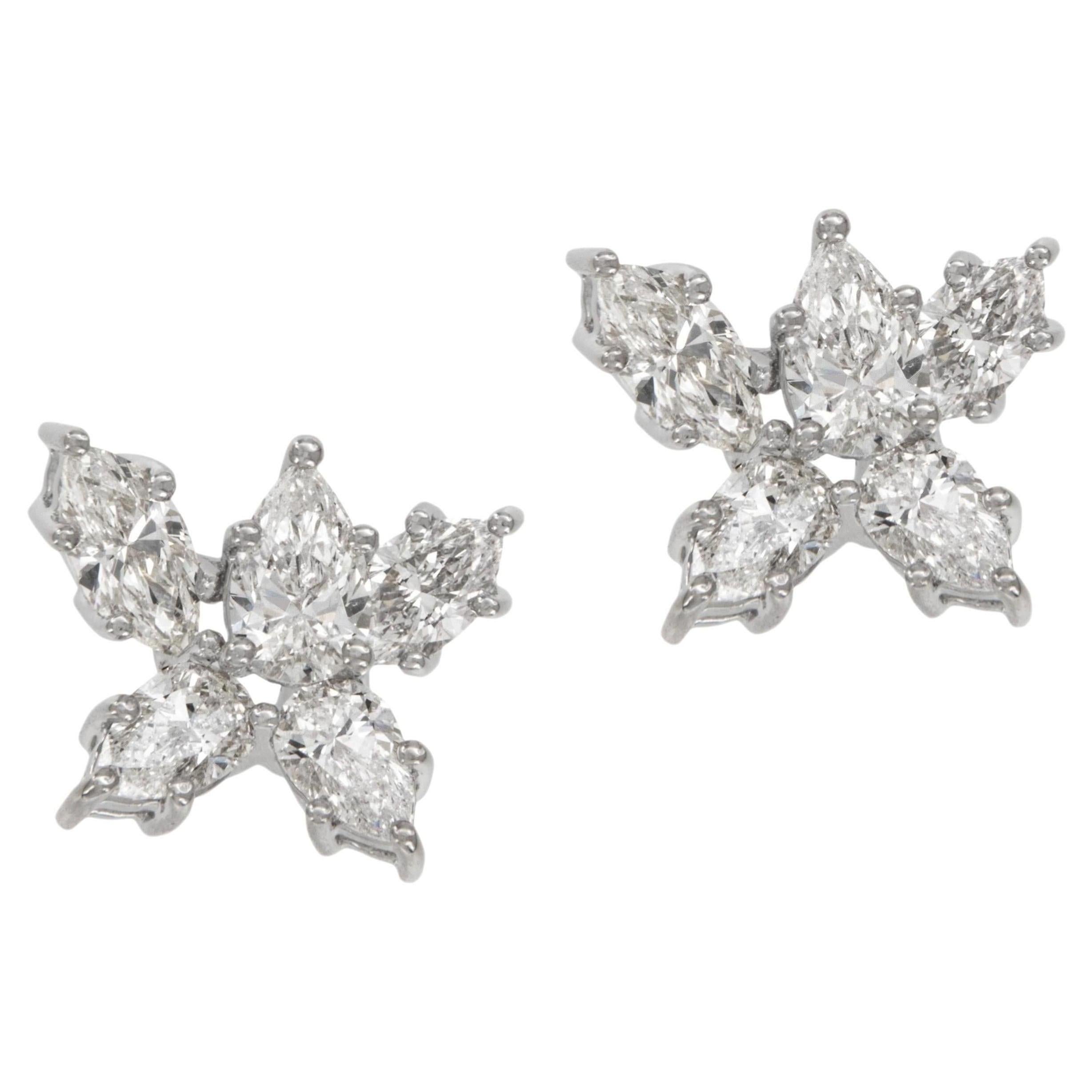 18 Karat Weißgold 1,42 Cttw Baguette- und Prinzessinnenschliff-Diamant-Reif-Ohrringe