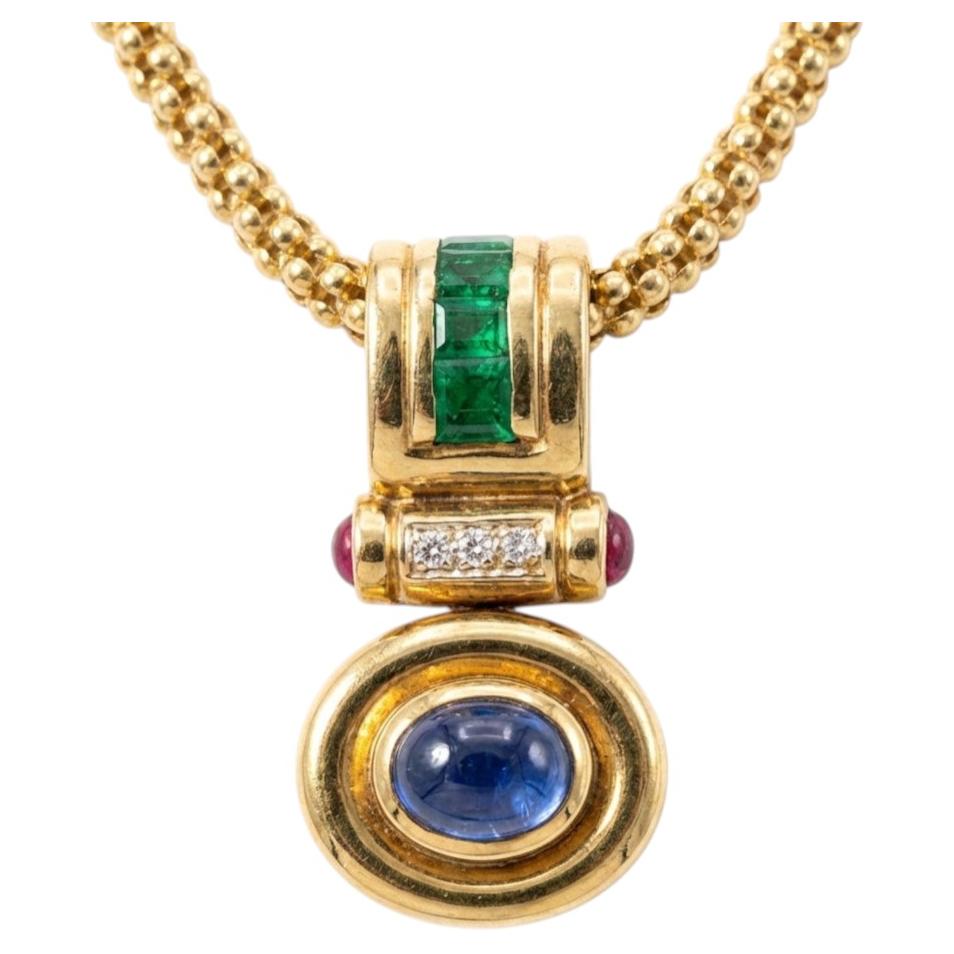 Chimento Saphir Smaragd Rubin Diamant 18K Gold Anhänger Halskette