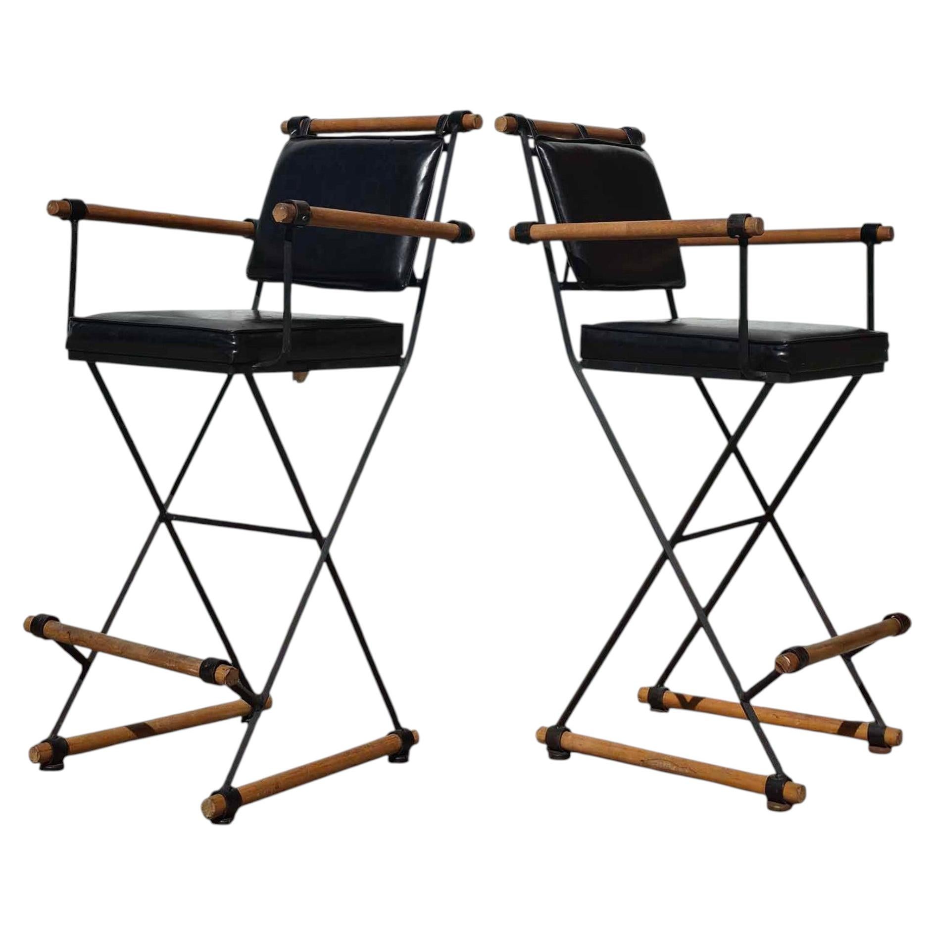3er-Set Cleo Baldon "Terra" Barhocker, 1970er Jahre Architektureisen & Schaffell