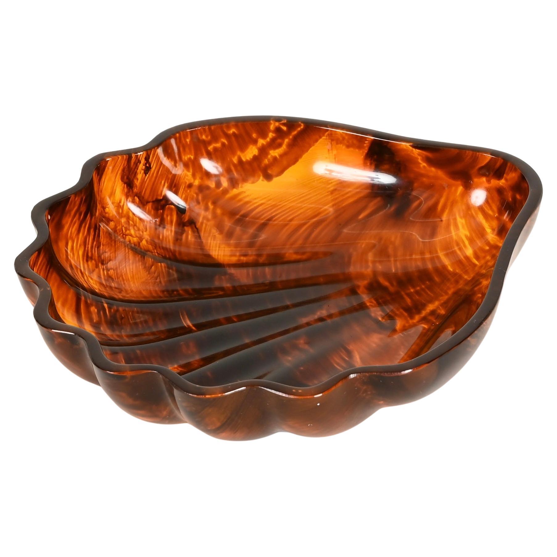 Atemberaubende muschelförmige dekorative Auffangschale oder Schale aus einem einzigen Stück schildpattartigem Lucit. Dieses unglaublich stilvolle Stück wurde von Dior Home entworfen ...