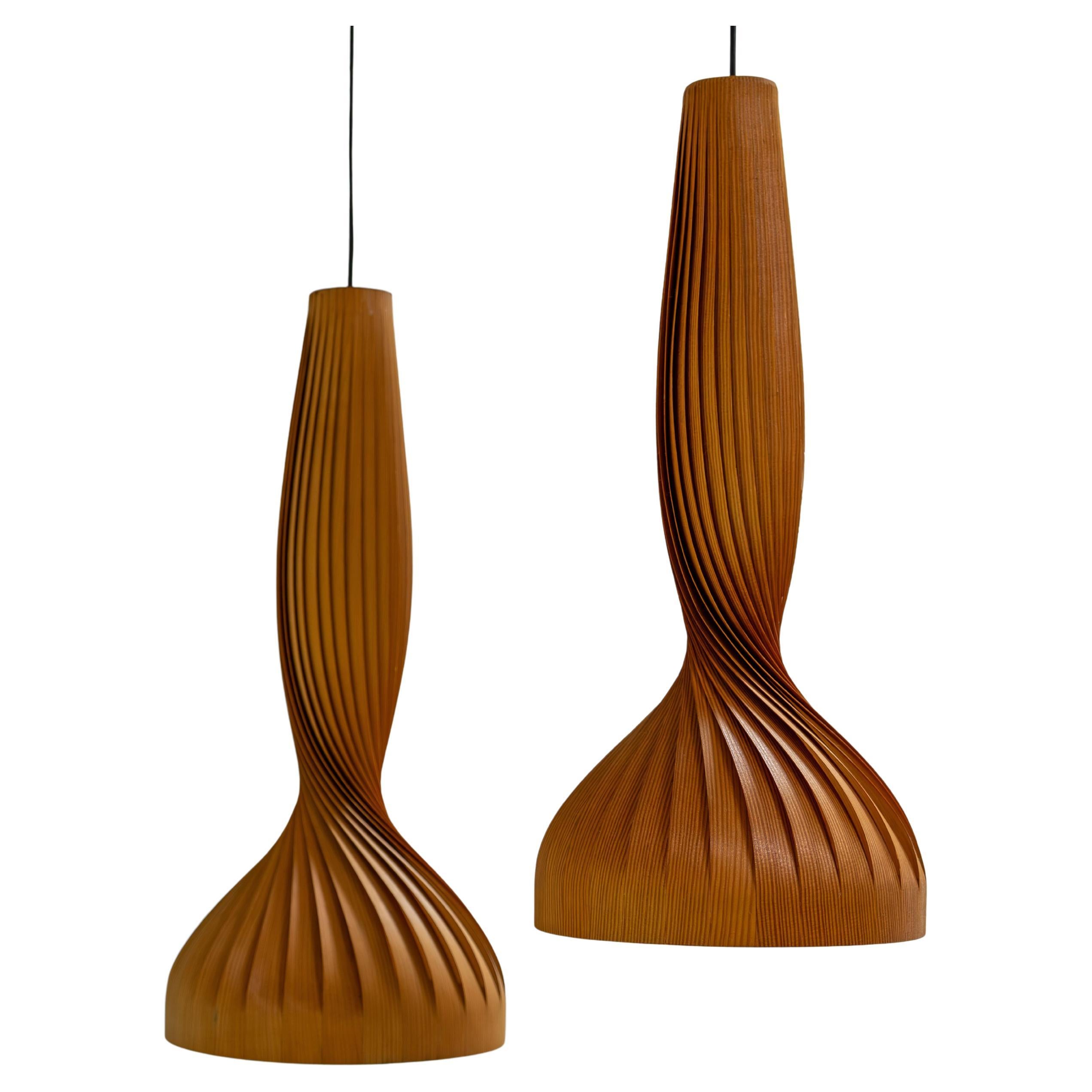 Paar Pendelleuchten aus Kiefer von Hans-Agne Jakobsson für Ellysett, Schweden, 1960er Jahre