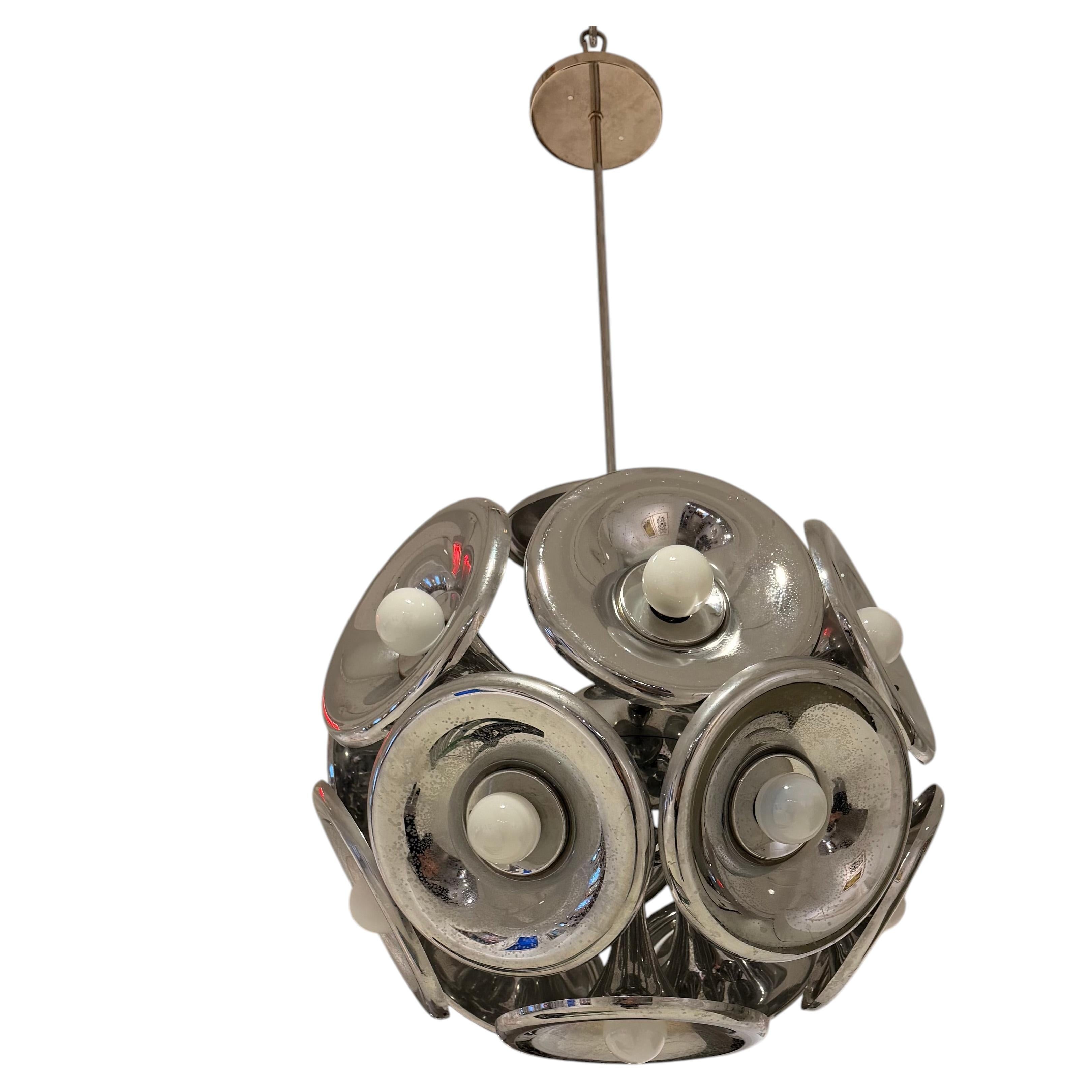 Esperia Minimal verchromter Metallkronleuchter 1970
