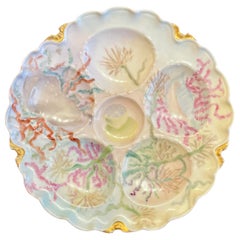 Austernteller aus Majolika des 19. Jahrhunderts von Longchamp