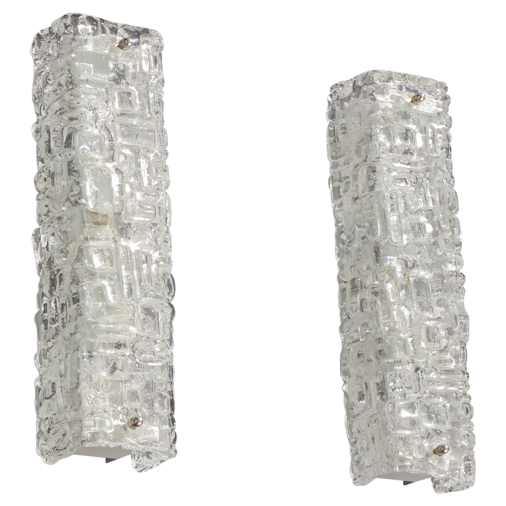 Seltene Hängeleuchte mit Messingfuß und Glas von Orrefors. Entworfen von Carl Fagerlund für Fagerhult, Schweden, Mitte des 19. Jahrhunderts. Maße: Zwei sind verfügbar, Höhe 55 und ...