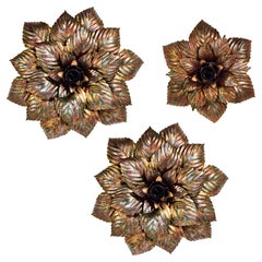 Skulpturale Sonnenschliff-Deckenleuchte mit Blattrahmen, der eine zentrale...