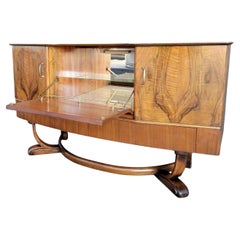 1950er Art Deco Midcentury Italian Walnut Mirror Mosaic Sideboard Bar Cabinet