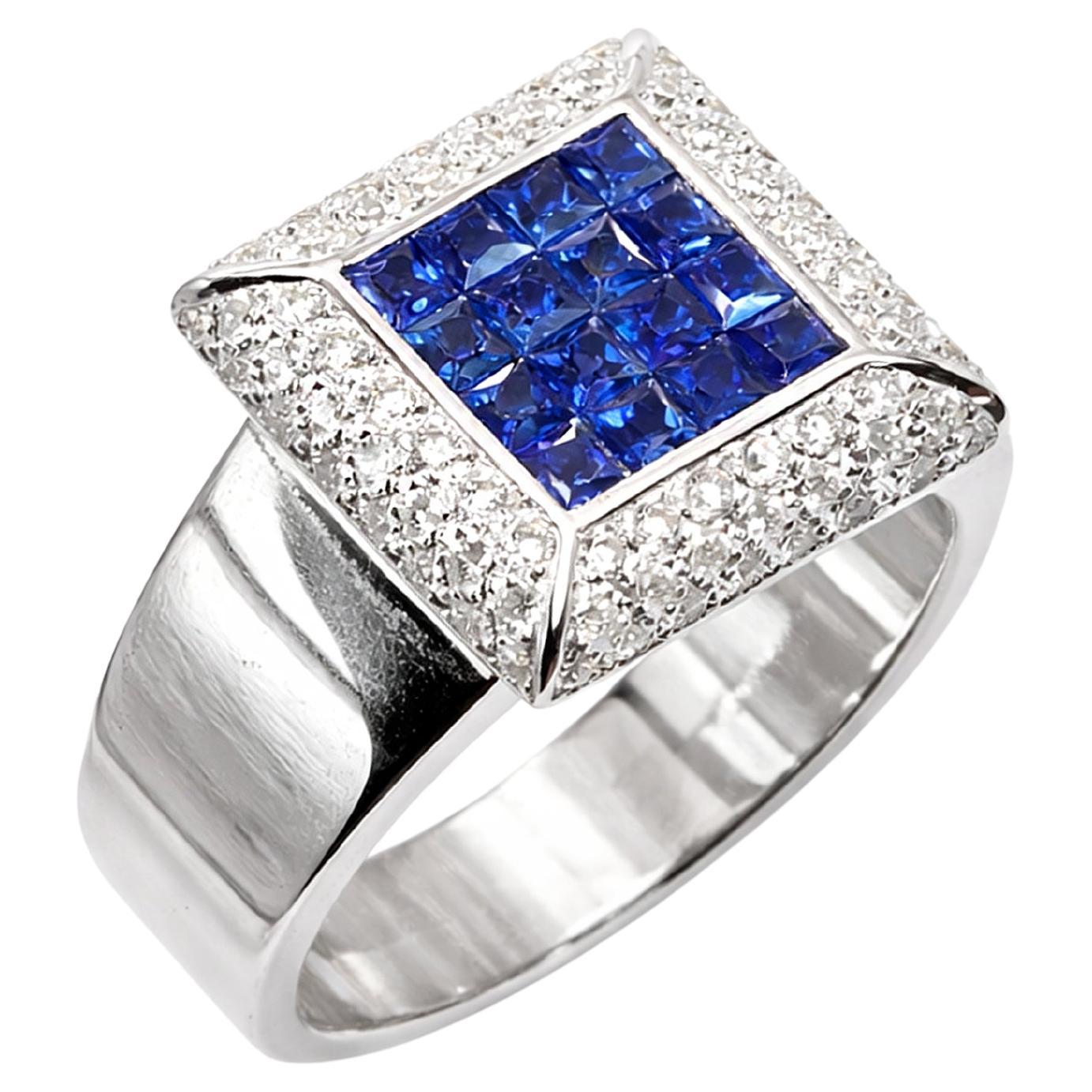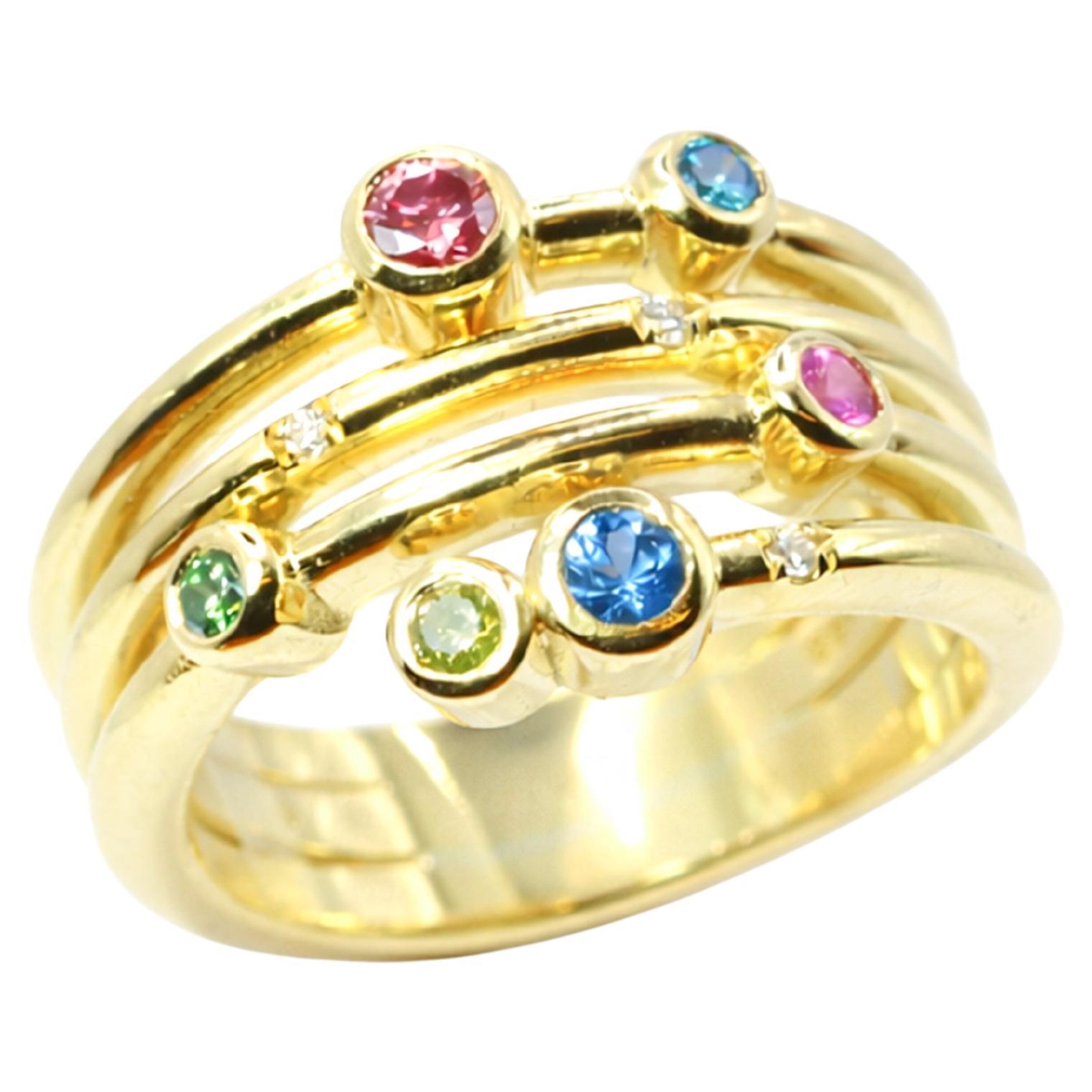 Georgios Collections 18 Karat Gold Byzantinischer Ring mit Tansanit und blauen Diamanten