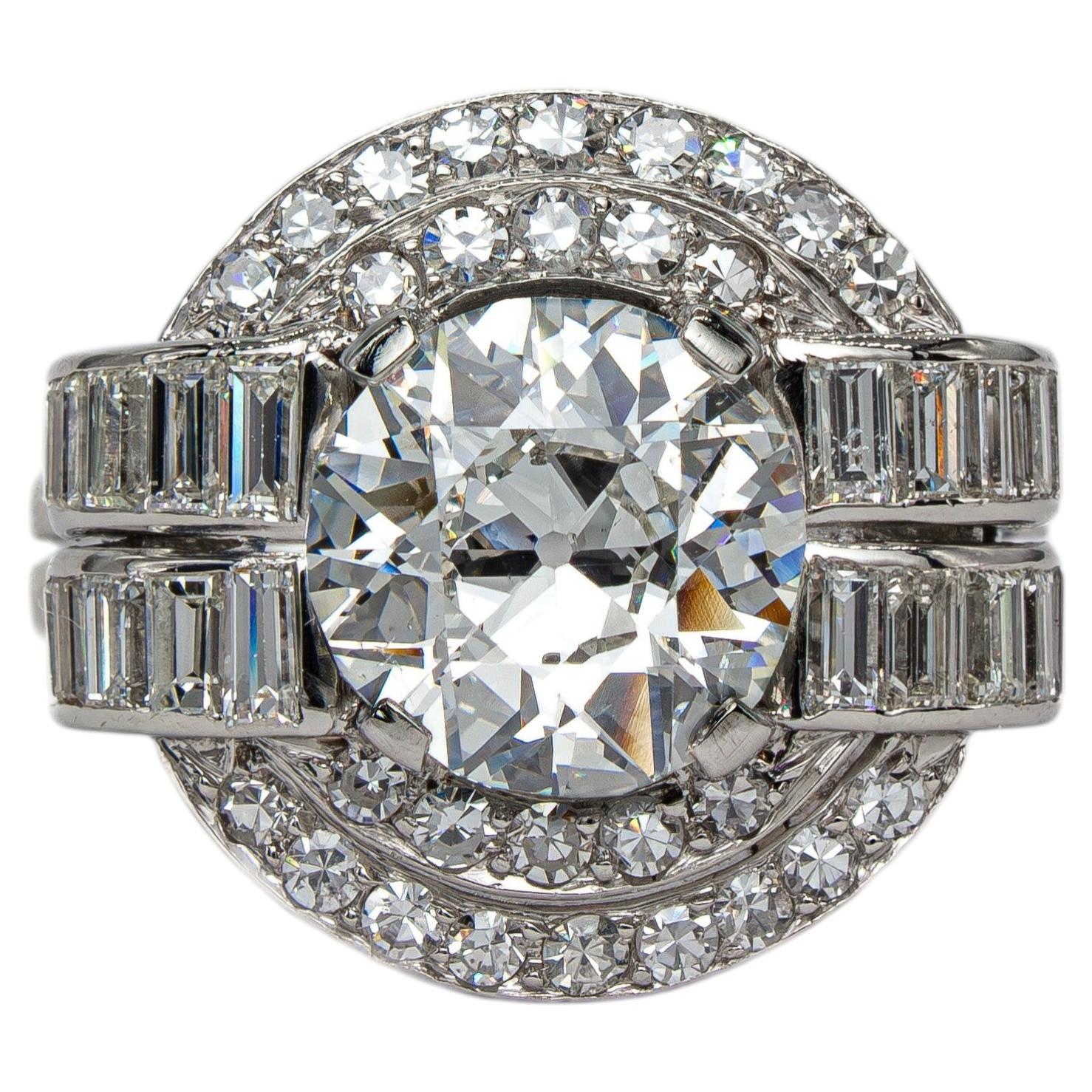 Dieser außergewöhnliche Platinring mit drei Steinen ist ein Meisterwerk an Präzision, Brillanz und Ausgewogenheit. In seinem Zentrum befindet sich ein atemberaubender 4,02-Karat-Diam...