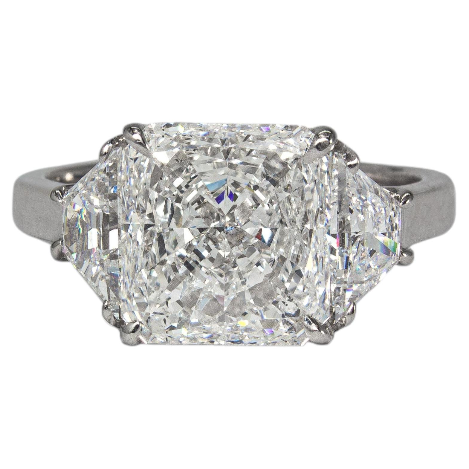 J. Birnbach GIA 4,02 Karat G lupenreiner Diamantring mit drei Steinen im Strahlenschliff
