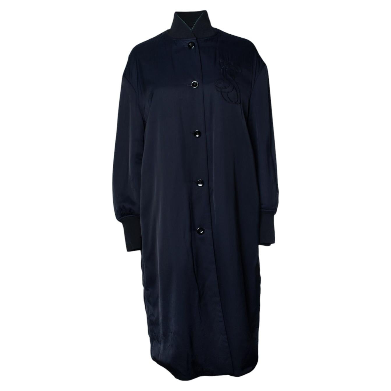 Jil Sander, blauer langer Bomber-Sportmantel mit Stickerei. Der Artikel ist in gutem Zustand.