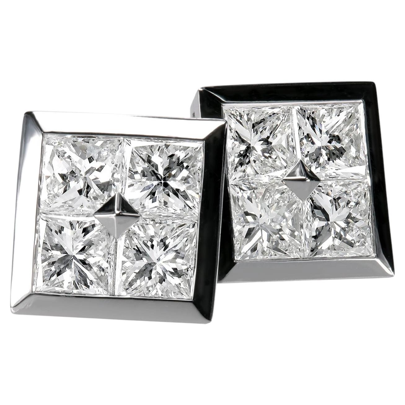Leon Mege Platin Diamant Ohrstecker mit Prinzessinnenschliff