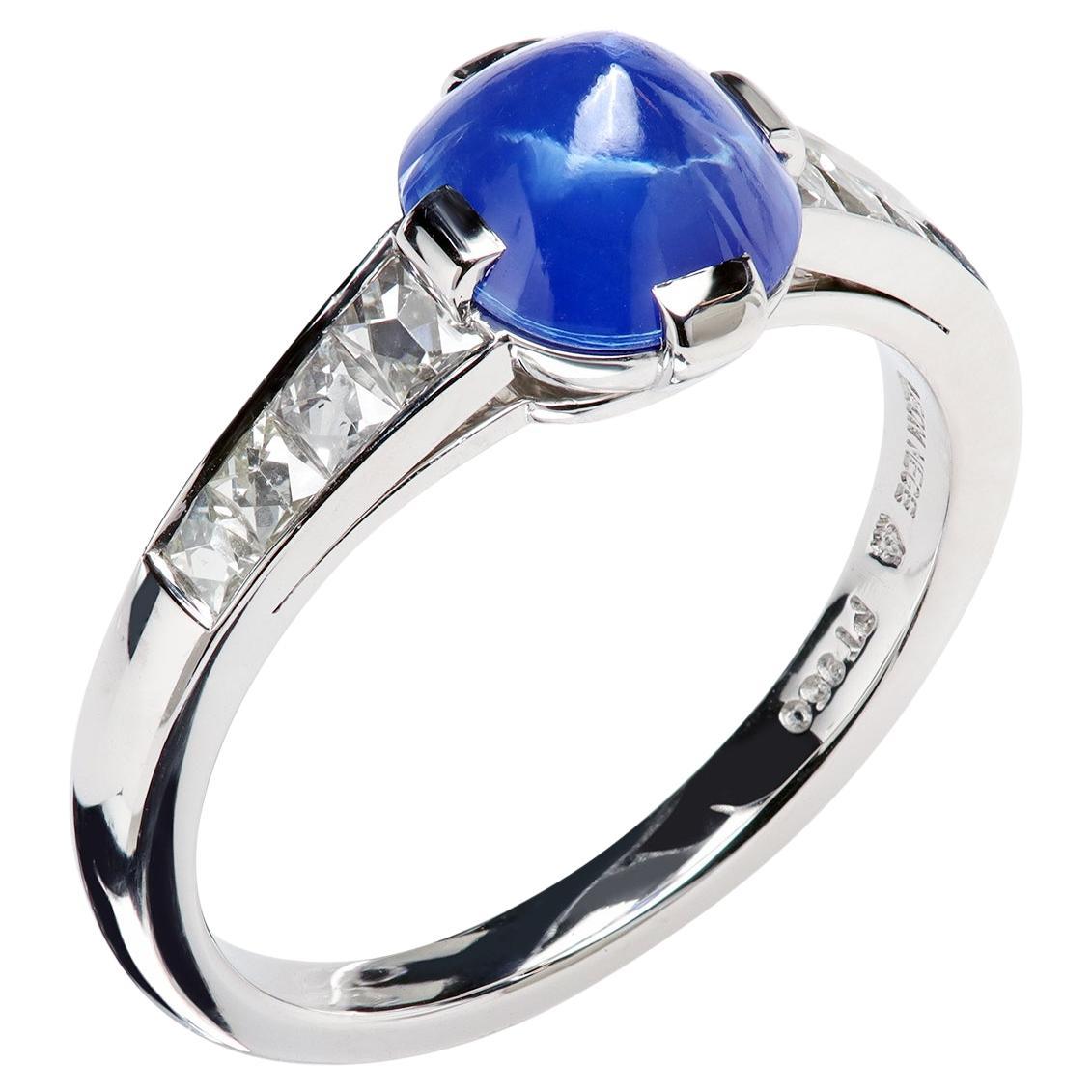 Leon Mege Dreistein-Ring aus Platin mit Smaragdschliff-Diamant und Trapezoiden